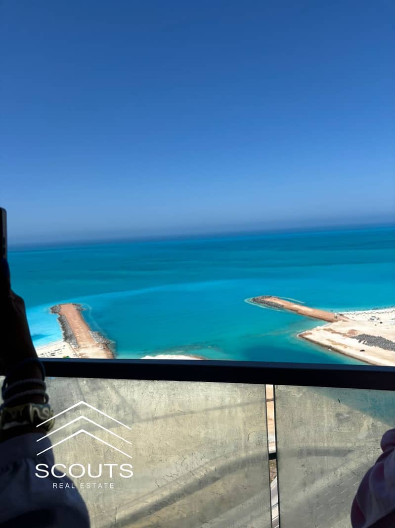 High return on investment, apartment for sale, immediate occupancy in New Alamein, fully finished, Ultra Super, full sea view from all rooms, El Alame