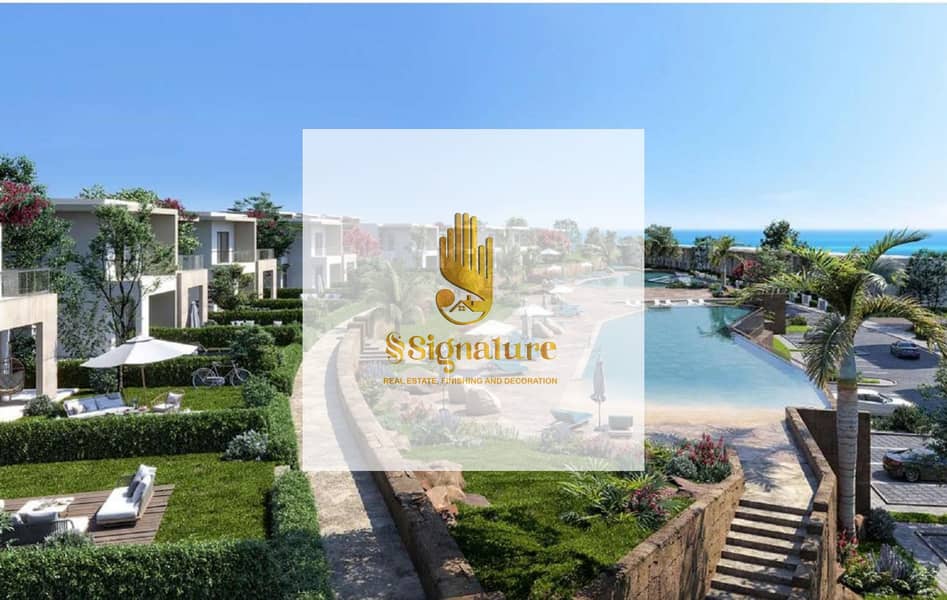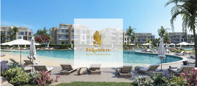 At a special price and with a stunning view, a fully finished two-bedroom chalet is for sale in Sea Shore, North Coast, Ras El Hekma.