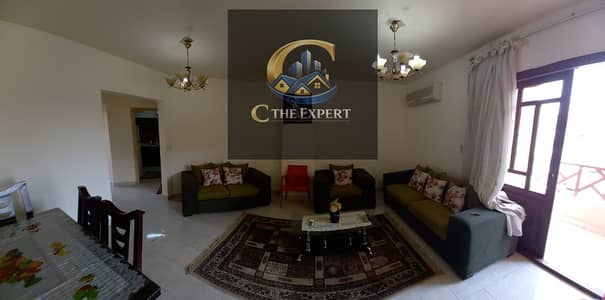 Fully furnished apartment for rent with an open view and garden, second floor, two bedrooms, in Al Rehab 1 - Phase 5, Condo - New Cairo