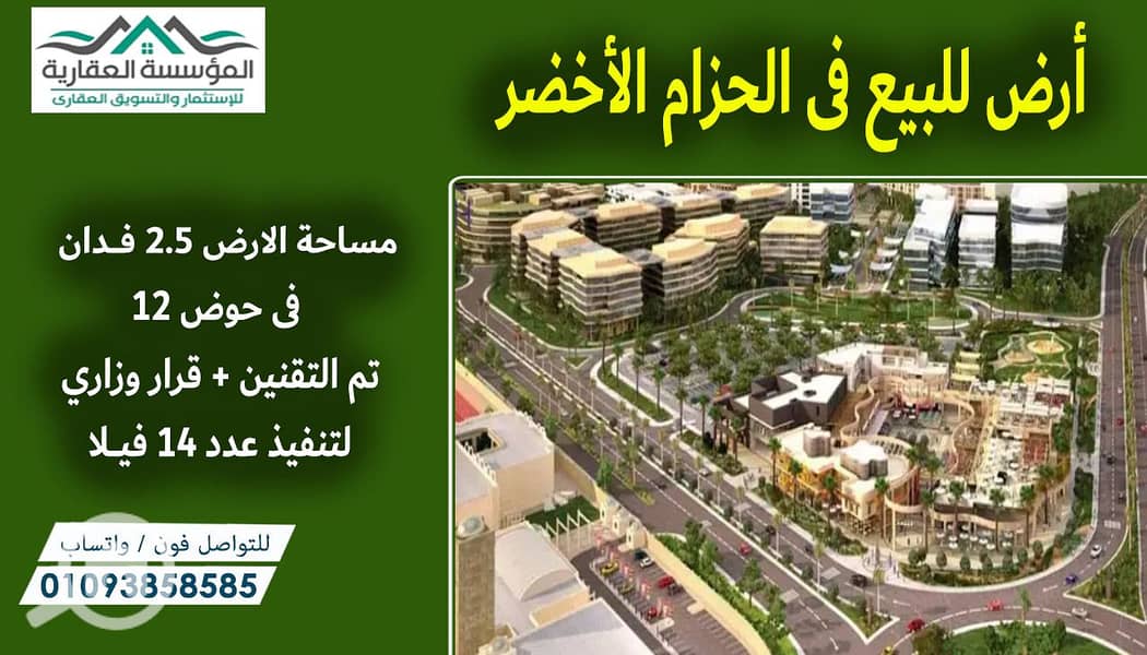 Land for sale in Basin 12 - Green Belt - Area 2.5 feddans - Documented + Ministerial decree - For building 12 villas - Very prime location