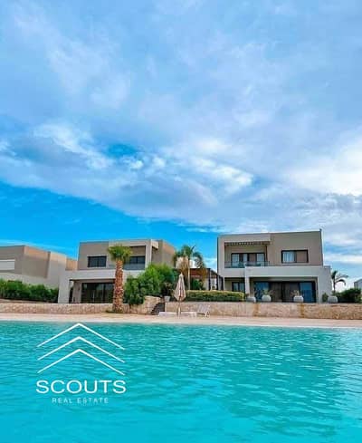 Chalet for sale, ready in a few months, fully finished + kitchen with an open view of the sea and lagoon in Azha Village in Ain Sokhna, next to Porto