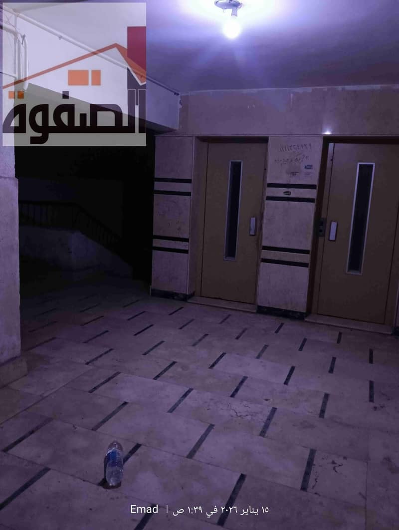 For rent, an apartment consisting of two bedrooms, a reception area, a bathroom, and a kitchen on the eleventh floor. It has water and thermal insulation, and the apartment has a northern facade. There are 3 elevators working in the New Awqaf Buildings in Arab Maadi, located in a service area. An excellent tower close to the Arab station, just 5 minutes away. 24-hour services with 2 guards for the building and 2 balconies. The apartment is in perfect condition.