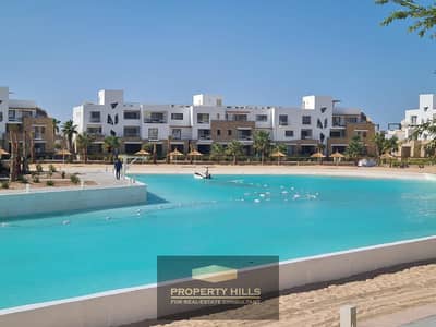 Chalet for sale, fully finished with air conditioning, kitchen, and dressing, panoramic view of the sea from Hassan Allaan Swan Lake El Gouna in Hurghada, Red Sea.