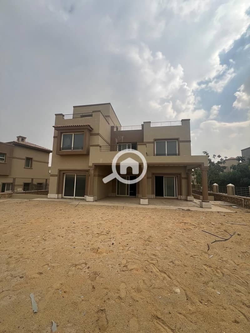 Standalone villa for sale in Palm Hills Compound – Katameya PK1, semi-finished, at the best price within the compound. Practical and comfortable design, with a large open basement and views of the English Court.