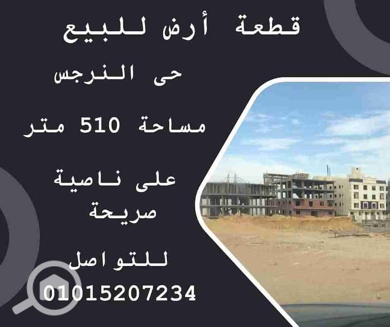Corner land for sale in Al-Nargis Al-Jadida, steps from Gamal Abdel Nasser and Mohamed Naguib.