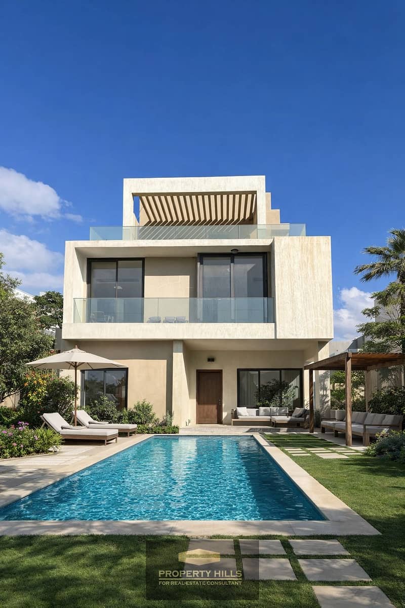 Receive immediately a fully finished villa with air conditioning 510 m panoramic view overlooking the landscape in AL MARASEM next to Mivida and AUC