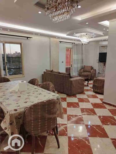 For rent in Al Rehab, a fully furnished and air-conditioned apartment of 155 sqm, special finishing, a prime location near the food court. The internal layout of the apartment includes 3 bedrooms, one of which is a master bedroom with a bathroom, 3 bathrooms, and a reception area with 3 pieces, plus a kitchen.