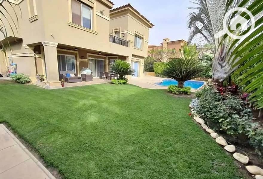 Standalone villa for sale, ready for immediate occupancy, prime location, and open garden view in Lake View Compound, in the heart of New Cairo.