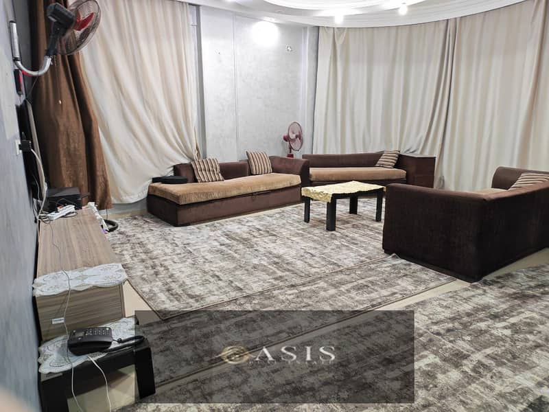 For sale: A distinctive apartment in Sheikh Zayed, 7th District, 2nd Neighborhood, in the villas area. The apartment is double-fronted, with landscape views from all sides.