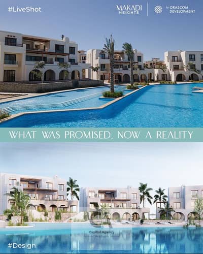 Fully finished chalet for sale with 10% down payment in the Red Sea with Sawiris Orascom in Makadi Heights with Lagoon View, Makadi Heights Red Sea R