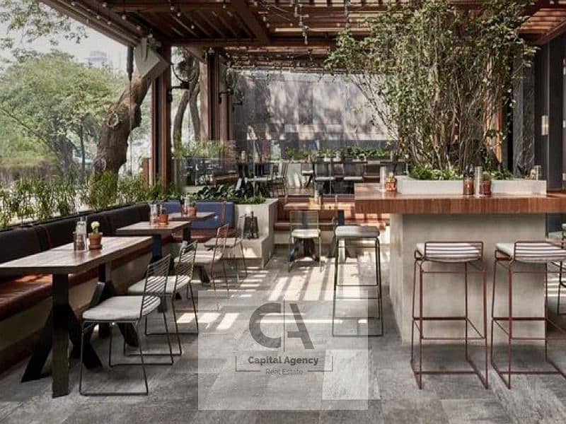Finished Restaurant and cafe for rent, 281 sq m, ground floor, street-facing, next to leading well-known brands, near the American University in Cairo