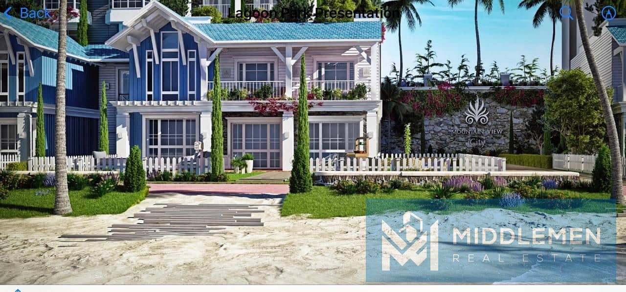Beach House villa 285m prime location view direct on lagoon under market price mountain view i city new cairo
