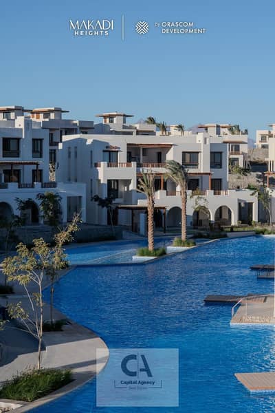 Fully finished chalet for sale in Makadi Heights, Red Sea with Sawiris Orascom - with lagoon view, 10% down payment.