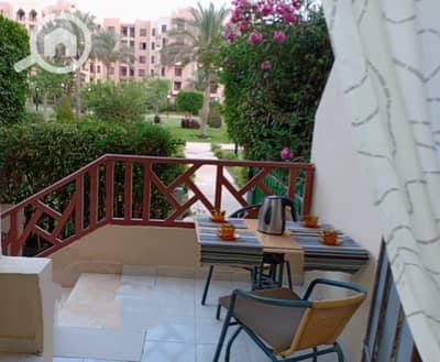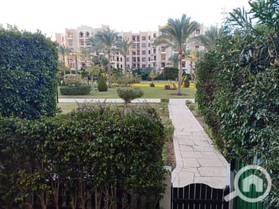 For rent in Al Rehab, a 90 sq m furnished apartment with modern furniture and a 75 sq m private garden. It overlooks a large, unobstructed garden, off