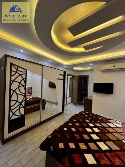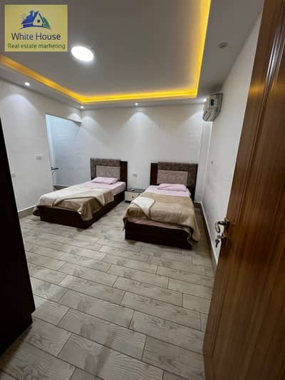 136m² apartment with a 50m² garden for rent, furnished, in Al Rehab City, hotel-style finishing