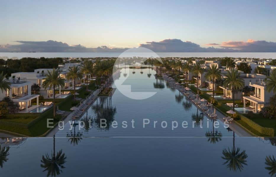 The development features a main beach on the North Coast, panoramic Mediterranean sea views, and a master‑planned community with high‑quality infrastructure.