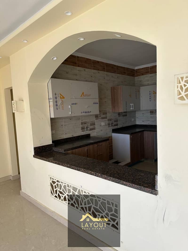 Brand new apartment for rent in Galleria Moon Valley Compound, featuring an open view overlooking the main entrance, ideal for upscale family living and ready for immediate move-in.