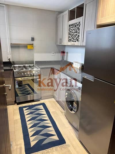 A modern, fully furnished apartment in a prime location at Cairo Festival City | Living, offering a beautiful clubhouse view. Perfect for tenants seeking comfort, style, and convenience.