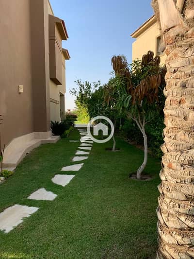 A detached villa for sale with luxurious finishes and decor, strategically located in Palm Hills Katameya Compound (PK1). The villa boasts a clear and unobstructed sea view overlooking the lake and landscaped grounds.