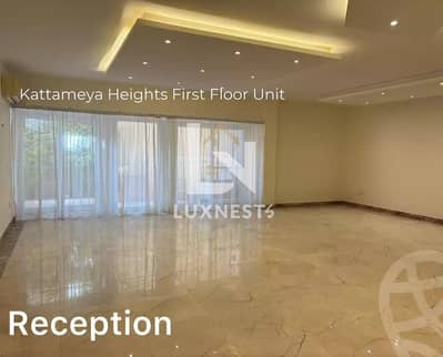 A super lux ground-floor apartment with private garden for rent in the prestigious Katameya Heights Compound, offering spacious living and prime location.