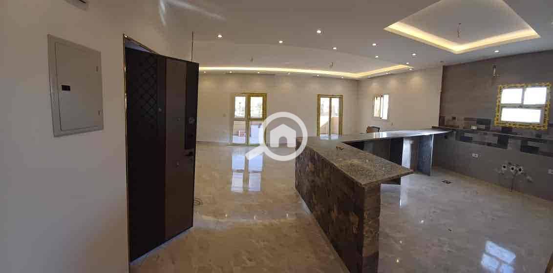 Third-floor apartment in Violet Villas 1, in front of Rahab Gate 13 and in front of Hassan Allam Compound. A location that will not be repeated on the largest square of a garden and on a two-way street. Very chic villa, 230 meters, 3 bedrooms, living room, reception, large terrace, large American kitchen, 2 bathrooms, Super Lux finishing, first residence with all utilities, includes a model 8, fully legalized.