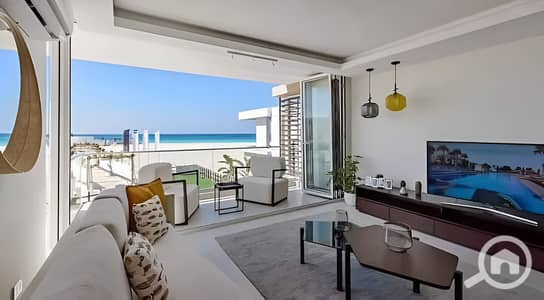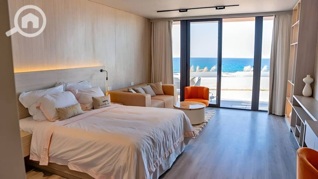 A fully finished chalet with air conditioning, in a prime location with a sea view, close to delivery, in the Cali Coast project, 190 km from Ras El Hekma. from Maven Company,