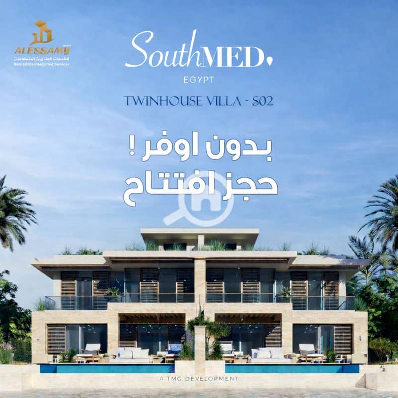 #No_Offer Exclusive from Al-Isami Group Twin House for sale in SouthMED North Coast. Reserve on the opening day with the lowest total contract possible, at the current chalet price, with a size of 285 square meters and installment plans up to 12 years. Enjoy views of the lakes and marina, elevated 35 meters above the marina and 50 meters above sea level, with a direct open view of the sea.