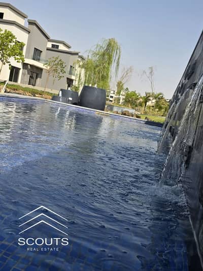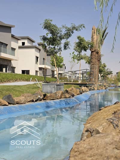 Villa for sale, immediate delivery, with a wonderful and direct view of the lagoons and landscaped garden in the most upscale compound, Creek Town, in