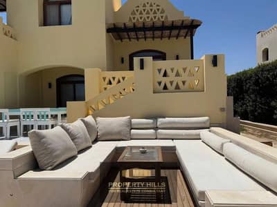 Own a panoramic 160-square-meter beachfront villa, fully finished to an ultra-super-lux standard, with a swimming pool in Makadi Heights Orascom, Hurghada, Red Sea, next to Soma Bay.