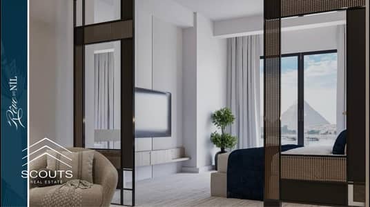Furnished and equipped hotel apartment for sale with a stunning Maadi Corniche view. Prime location next to Hilton and Zamalek. Ready for viewing now.