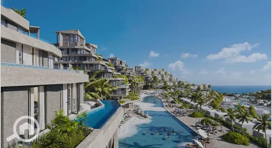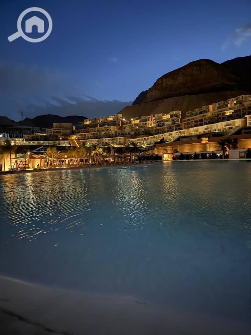 Chalet for sale in Mont Galala, ready for viewing, 2 bedrooms including master, direct sea & pool view, luxury finish, 500k EGP downpayment, rest in i