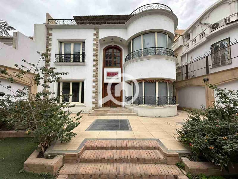 Office for rent in a prime location in Sheraton, a detached villa with an area of 500 square meters and ultra-premium finishing. Close to all services, transportation, and banks. A distinguished administrative location next to major international companies. Consists of a ground floor, first floor, roof, and excellent garden space.