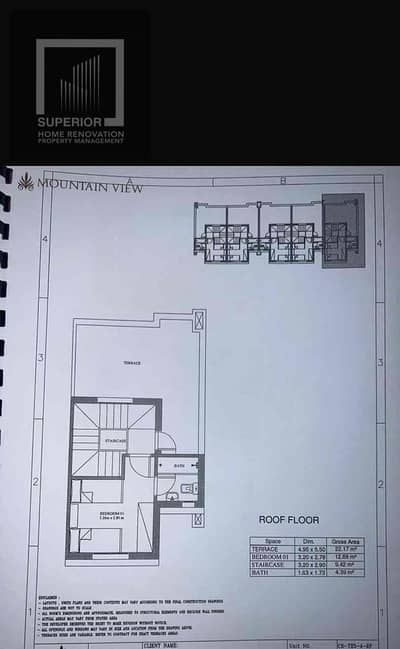 • الروف: غرفة إضافية مع حمام وتراس بانورامي كبير.