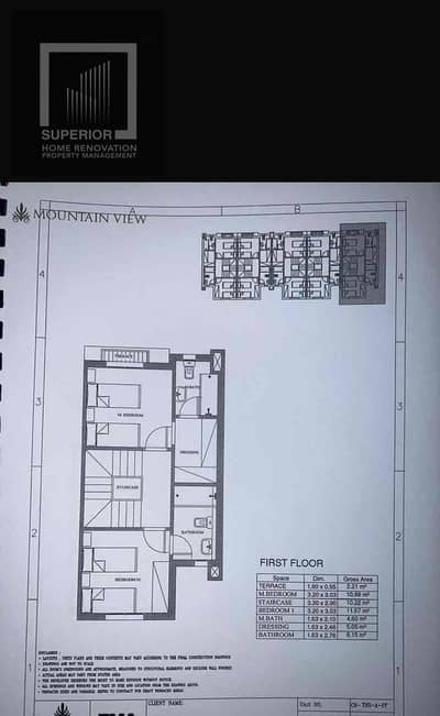 • التصميم: * الأرضي: ريسبشن واسع + مطبخ + تراس للحديقة.