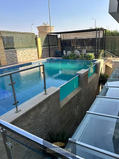 Villa for sale, ready for immediate sale, 409 meters, panoramic view, with private swimming pool, walled compound, near Palm Hills, Sheikh Zayed.