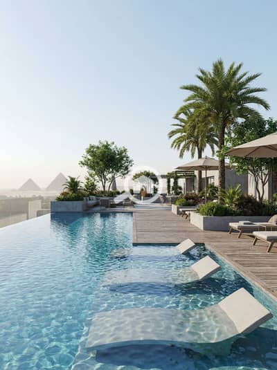 With a direct view of the pyramids, a great studio apartment for sale with a down payment of 260,000 + the cheapest monthly installment. Finished and