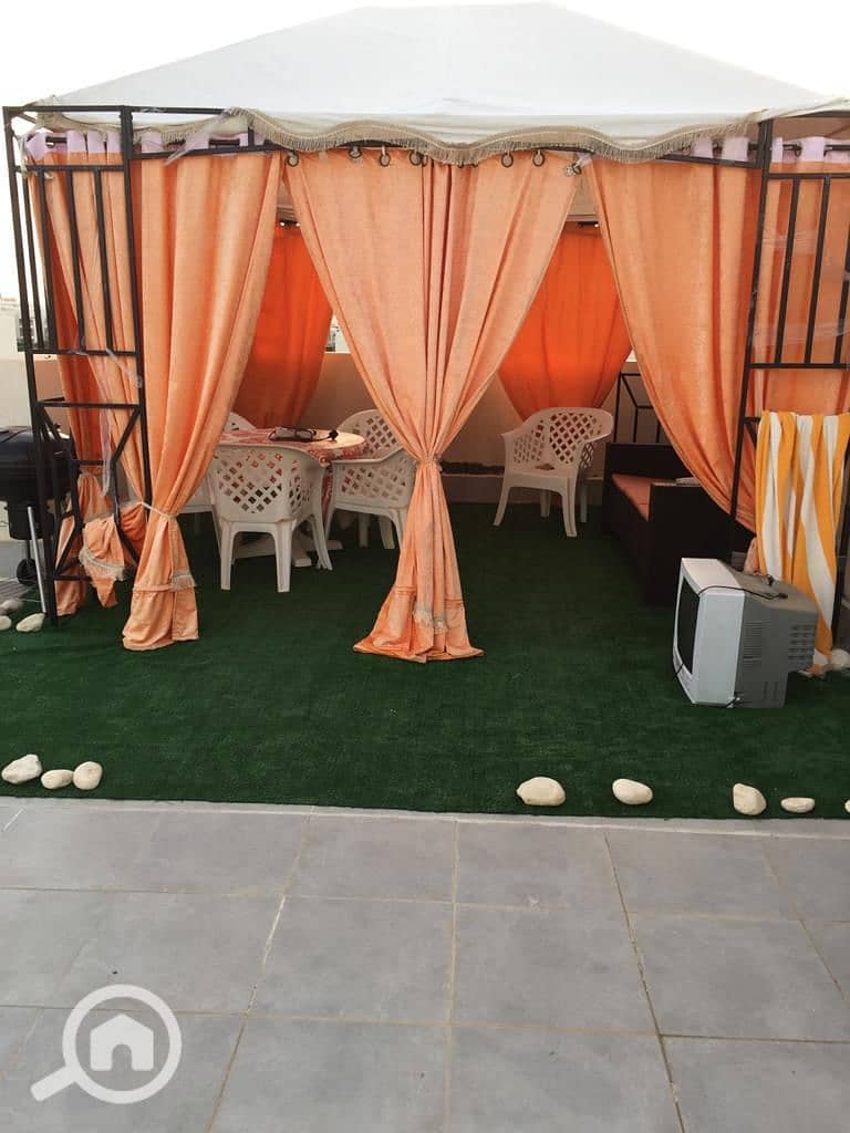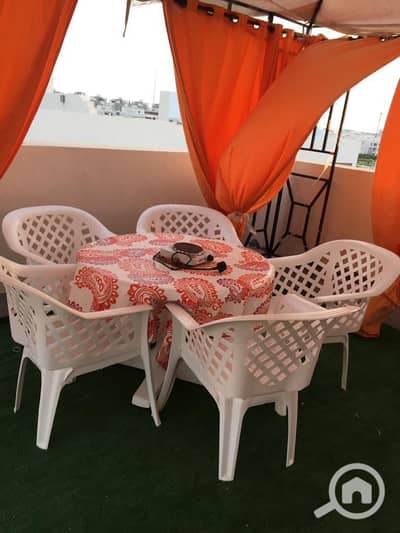Lowest price for a fully furnished penthouse chalet with a private roof. Two bedrooms, two bathrooms, for sale furnished with appliances and air conditioning. Only 7,500,000 EGP.
