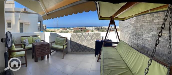 Ground floor chalet with penthouse, private roof, two bedrooms, high-end furnishings. Sold fully furnished with appliances, kitchen, and air condition