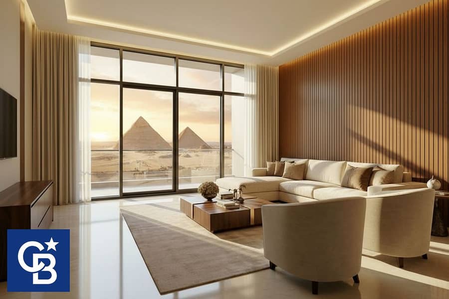 Hotel apartment 70 sqm with Pyramids view in a prime location near Sphinx Airport, offering strong investment returns
