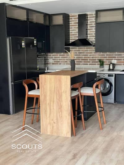 Excellent layout (3 bedrooms, including a master bedroom with a full garden view + dressing room + 3 bathrooms + nanny's room + terrace + living room + American kitchen)