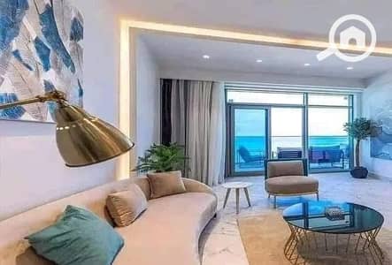 For sale, VIP chalet with a direct sea view, fully finished, ready for immediate delivery, in Mazarine Compound in New Alamein