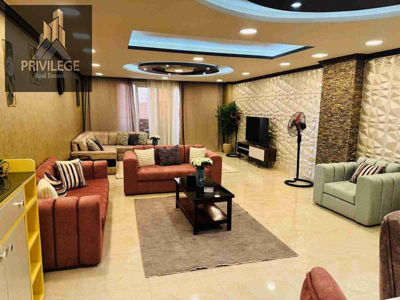 Furnished for rent, a 200 m apartment in Al-Sarayat Al-Maadi, Super Lux, first residence, near the Ugandan embassy by the sea