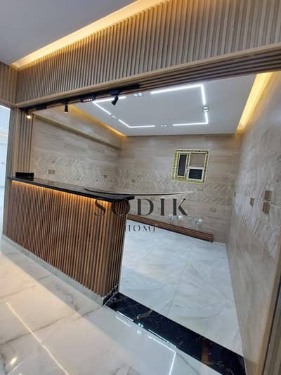 For those who appreciate a tranquil setting and high-end finishes, an apartment is for sale in Obour City, First District, Al-Tamniyat. The location is superb, directly opposite High City Compound, near the Fifth Circle and Obour Axis. This first-floor apartment (above the ground floor) spans 185 square meters and features ultra-super-luxurious finishing. The layout includes 3 bedrooms, 2 bathrooms, a reception area, and a kitchen. The location is exceptionally prime. Utilities (electricity and water meters) are available, and gas is connected but awaiting meter installation.