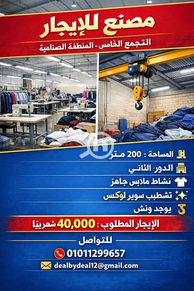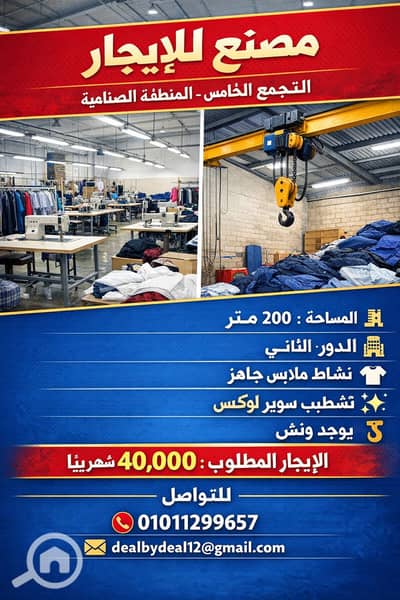 Factory for rent in Fifth Settlement, 1000 factories, area 200 meters, clothing business