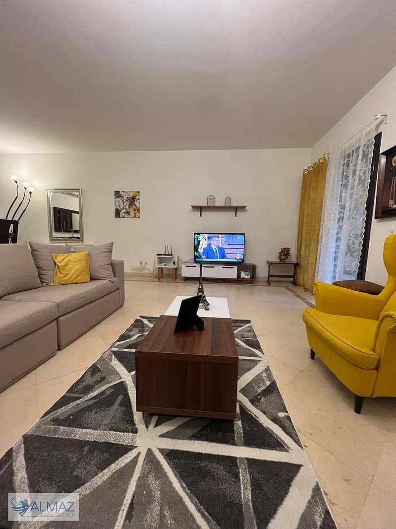 Furnished apartment with a garden, 186 sq m, for rent in Mivida Compound, Fifth Settlement, near South 90th Street, the Ring Road, and Cairo Airport