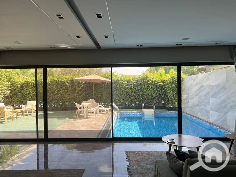 Luxury apartment for rent in Lake View Compound, ground floor with garden and private swimming pool