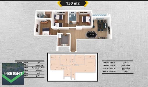 - Fifth floor, 150 sqm, side view facing El Nawady Street and the Monorail.