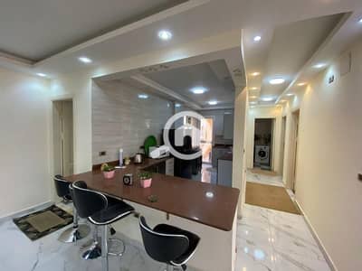 A fully furnished apartment available for rent in a prime location in Madinaty – B11. Situated on the fourth floor, corner unit, overlooking the park