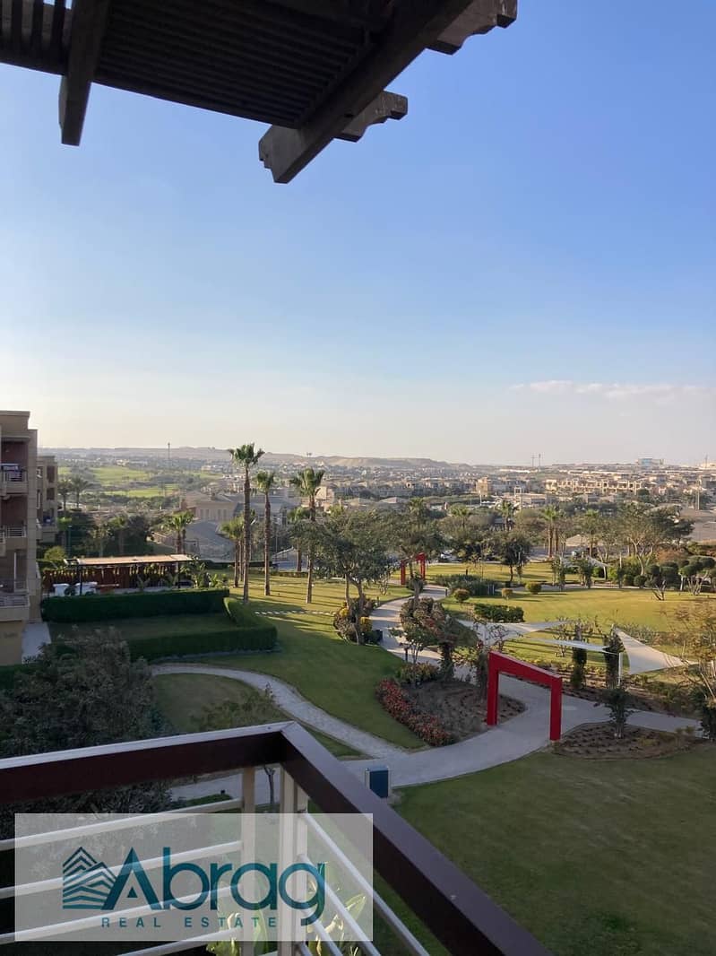 For rent: 3-bedroom apartment with kitchen appliances and air conditioning, golf and club view, New Giza Carnel Compound