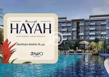 At the lowest price, own a seaside apartment with a wonderful view, area 178 square meters in October, with 10% down payment, in the Hayah Compound near Mall of Egypt and the Production City.